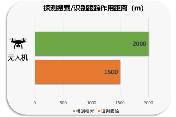 识别距离:热成像1.5km/可见光2km(0.35cm无人机)